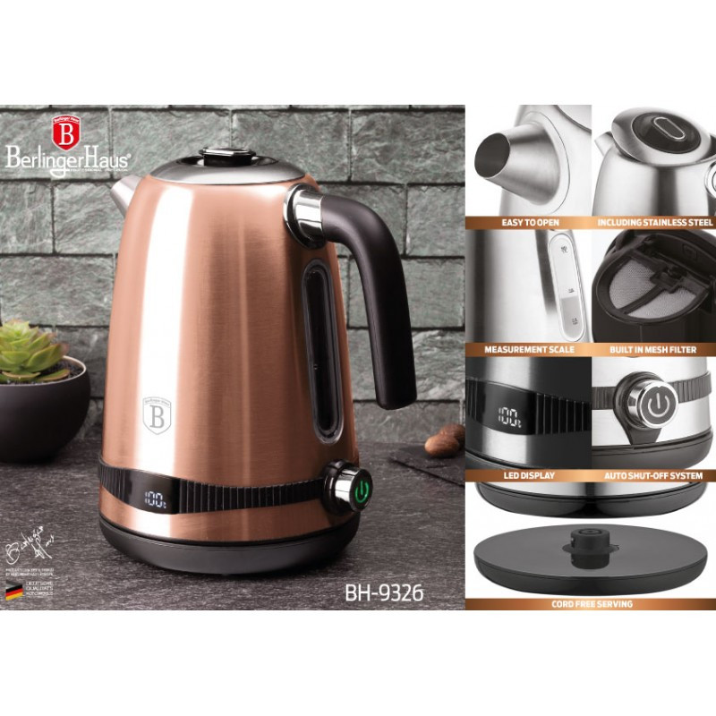 Elektrinis virdulys 1,7 l talpos Berlinger Haus BH-9326 Rose Gold Collection su reguliuojama temperatūra.