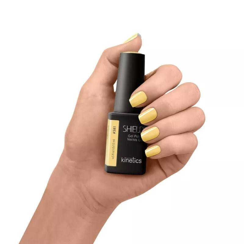 Kinetics „Shield“ gelis-lakas pasižymi veiksminga formule: nulakuokite nagus ir džiaukitės jais iki 3 savaičių, o nagų laką pašalinsite vos per 10 min.