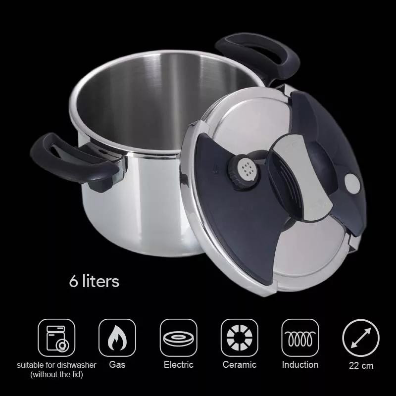 Dangtelis turi šešis saugumo mechanizmus, leidžiančius užtikrinti naudojimo saugumą. Lengvai atidaromas ir uždaromas dangtelis atitinka visus naujausius saugumo standartus ir užtikrina naudojimo patogumą. Puodą (be dangčio) galima plauti indaplovėje.