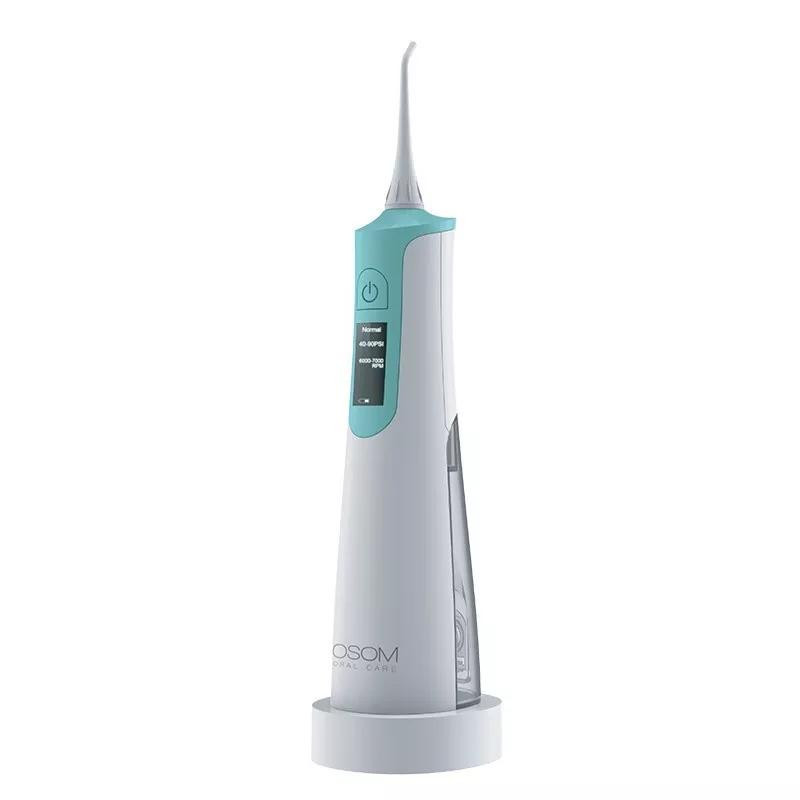 OSOM Oral Care „Mint“ burnos irigatorius vandens srove pašalina maisto likučius iš tarpdančių. Tai puiki alternatyva tarpdančių siūlui. Prižiūrėkite savo dantis ir dantenas žymiai paprasčiau ir efektyviau su šiuo aukštos kokybės burnos irigatoriumi. Tai taip pat nepamainomas prietaisas norint tinkamai prižiūrėti breketus.