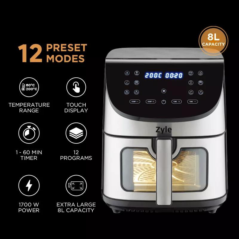 Ši „Zyle“ karšto oro gruzdintuvė išsiskiria itin didele talpa, kuri siekia net 8 l. Tai leis kepti didesnius maisto kiekius, taip pat pyragus ar duoną.
