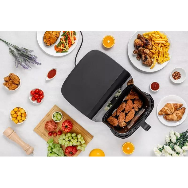 Galingumas: 1700 W; Karšto oro technologija sveikesniam maistui; Karšto oro gruzdintuvės talpa: 8 l; Reguliuojama temperatūra: 60-200°C; 12 skirtingų maisto ruošimo programų; Laikmatis: iki 60 minučių; Nelimpanti gruzdinimo indo danga; Apsauga nuo perkaitimo; Neįkaistanti rankena; Automatinis prietaiso išsijungimas bei signalas esant paruoštam patiekalui; Liečiamas LED ekranas; Neslystantis pagrindas; Išmatavimai: 28x 30x 36 cm