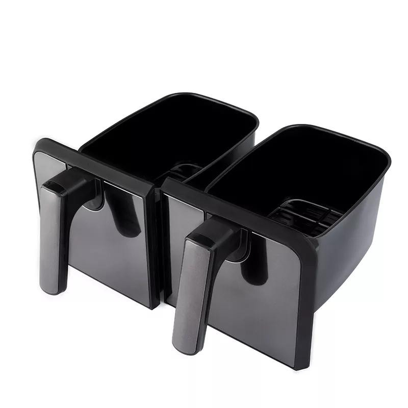 Maisto ruošimas visai šeimai dar niekuomet nebuvo toks patogus! Ši karšto oro gruzdintuvė turi du atskirus, erdvius, 4 l talpos indus, kuriuose pasigaminsite pačius gardžiausius, traškiausius bei sveikiausius patiekalus, kurie tiks visai šeimai. Tiesiog sudėkite norimus ingredientus į šiuos indus, pasirinkite programą ir karšto oro bangos juos pavers gardžiai iškepusiu maistu.