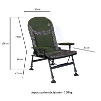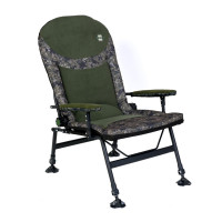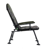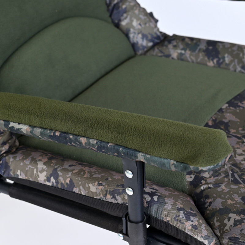 Sėdynės užvalkalas, pagamintas iš aukštos kokybės vilnos ir poliesterio, ne tik suteikia komforto, bet ir turi patrauklią išvaizdą. Dėl dominuojančios žalios spalvos su kamufliažiniais įdėklais kėdė puikiai dera su natūralia aplinka ir suteikia stiliaus bet kokiai žvejybos kelionei.