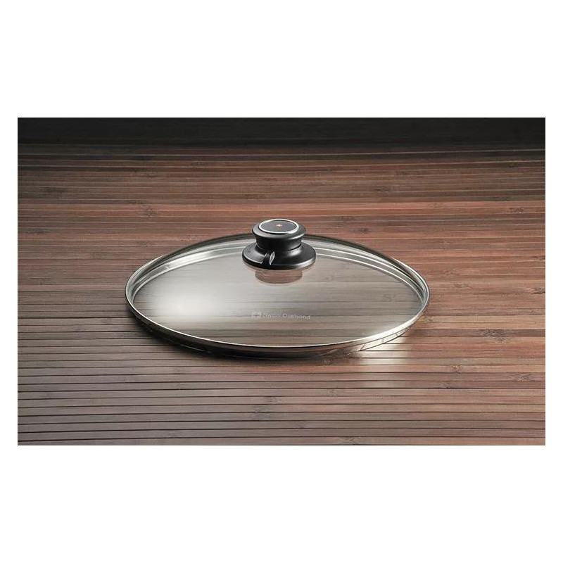 Šis stiklinis dangtis yra specialiai sukurtas „Swiss Diamond“ 26 cm skersmens keptuvėms ir puodams, tačiau universaliai tinka visiems šio dydžio indams. Dangtis pasižymi apsauga nuo karščio iki 260°C gaminimui orkaitėje. Ypač skaidrus stiklas užtikrina, kad matysite visą maisto gamybos procesą be jokio dangčio nukėlinėjimo. Reguliuojama garo anga leidžia nustatyti reikiamą drėgmės lygį renkantis kepinimą ar troškinimą.