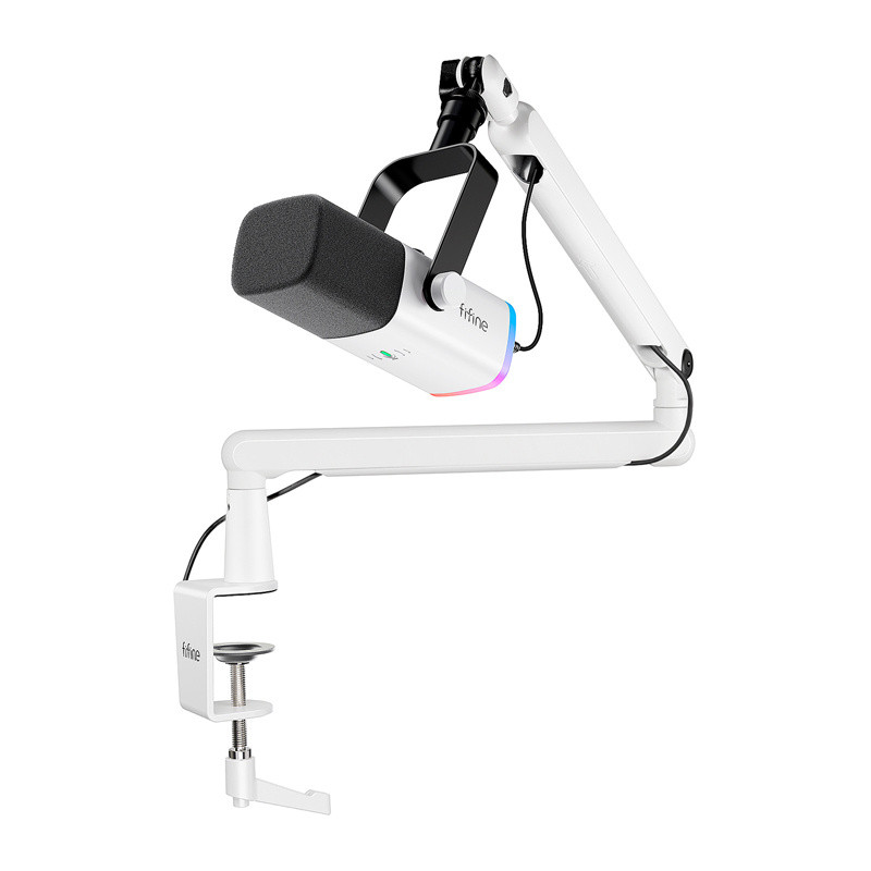 FIFINE TAM8W mikrofono korpuse yra patogios rankenėlės ir mygtukai, leidžiantys visiškai valdyti garsą neieškodami nustatymų programinėje įrangoje. Jautrumo rankenėlė leidžia tiksliai sureguliuoti mikrofono įvesties lygį, o nutildymo jungiklis leidžia akimirksniu įjungti arba išjungti įrašymą, kad būtų užtikrintas privatumas. Ausinių garsumo valdiklis leidžia lengvai reguliuoti klausymosi lygį, o atskiras RGB foninio apšvietimo valdiklis leidžia greitai pakeisti jo intensyvumą arba režimą.