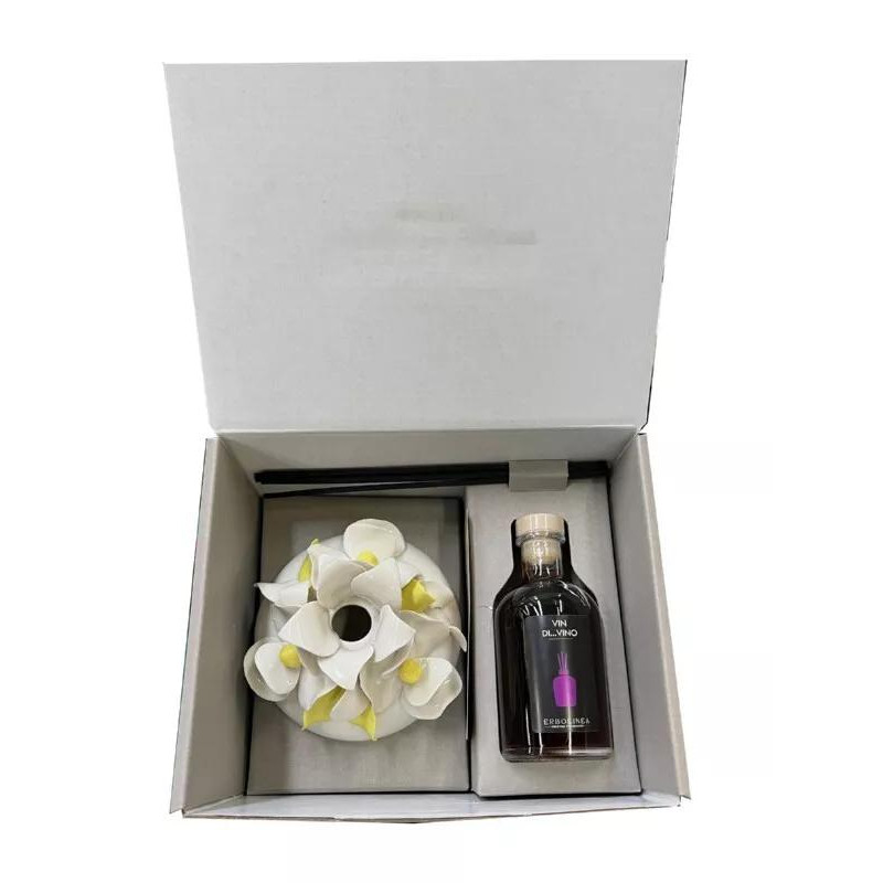 „Erbolinea“ kvapų namams rinkinį sudaro: kvapas namams su lazdelėmis Erbolinea „Capodimonte Beige Vin Di Vino“ ,100 ml ir specialus keraminis indelis.