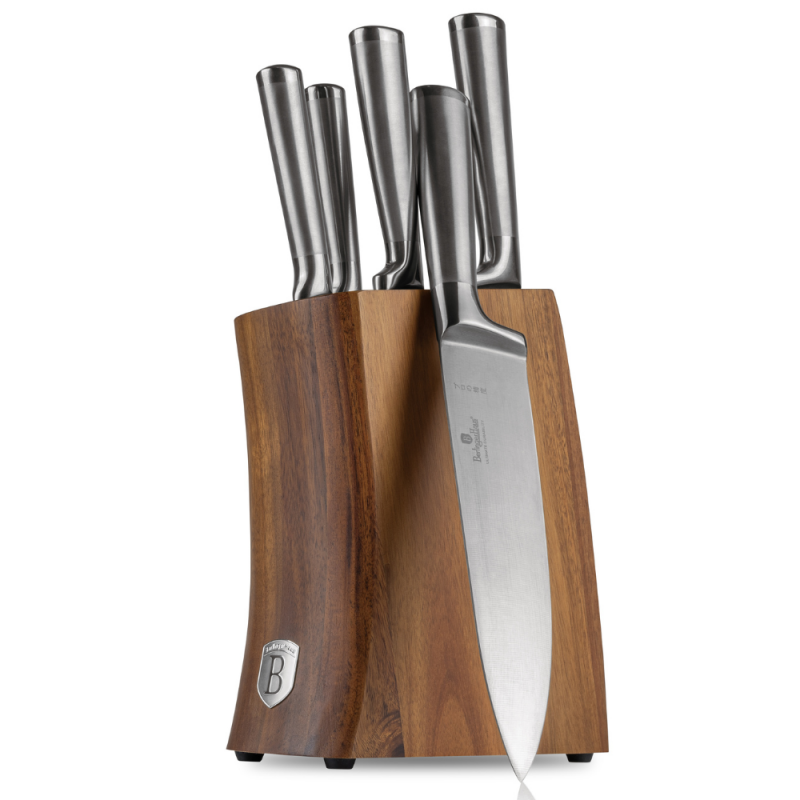 Nerūdijančio plieno peilių rinkinys su stovu Berlinger Haus BH-3124. Pagamintas iš aukštos kokybės 3cr13 nerūdijančio plieno su akacijos medžio stovu.
