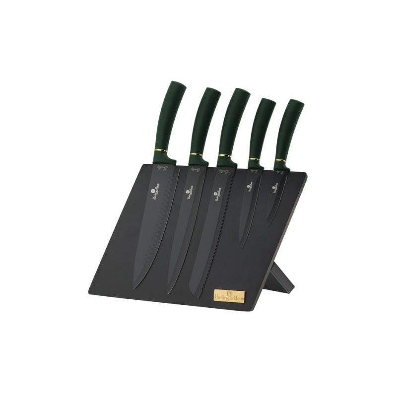 6 dalių peilių rinkinys su magnetiniu stovu Berlinger Haus Emerald Collection BH-2518