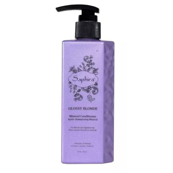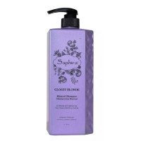 Saphira „Glossy Blonde Shampoo“ šampūnas, praturtintas 26 Negyvosios jūros mineralais, valo plaukus bei pašalina gelsvus bei vario spalvos atspalvius natūraliai šviesiuose arba šviesintuose plaukuose. .