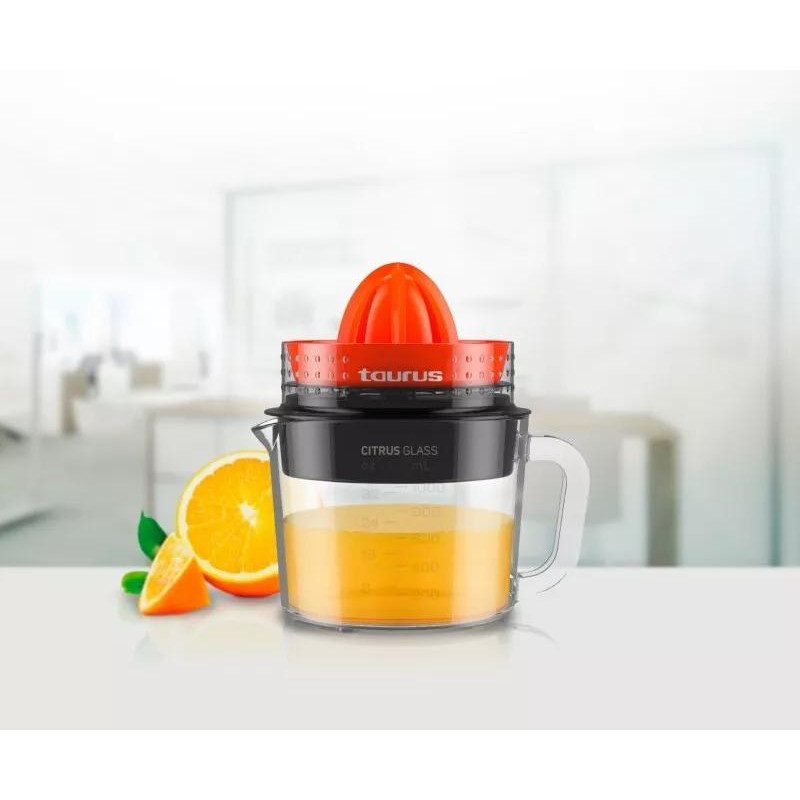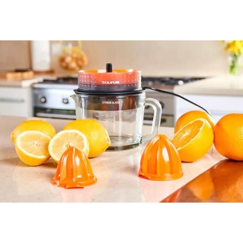 Su Taurus „CITRUSGLASS“ citrusinių vaisių sulčiaspaude jūs galėsite mėgautis natūraliomis, nuostabaus skonio šviežių vaisių sultimis be jokių pastangų. Prietaisas pasižymi patogiu naudojimu ir išskirtiniu funkcionalumu. Praktiška ir komfortabili sulčiaspaudė leis jums namuose išsispausti puikių sulčių, o lengvas naudojimas sulčių spaudimo procesą pavers malonumu. Sulčiaspaudė pasižymi 30 W galios varikliu, kuris užtikrina greitą ir efektyvų sulčių spaudimą. Sulčių indas yra su patogiomis padalomis kas 200 ml iki 1000 ml talpos.