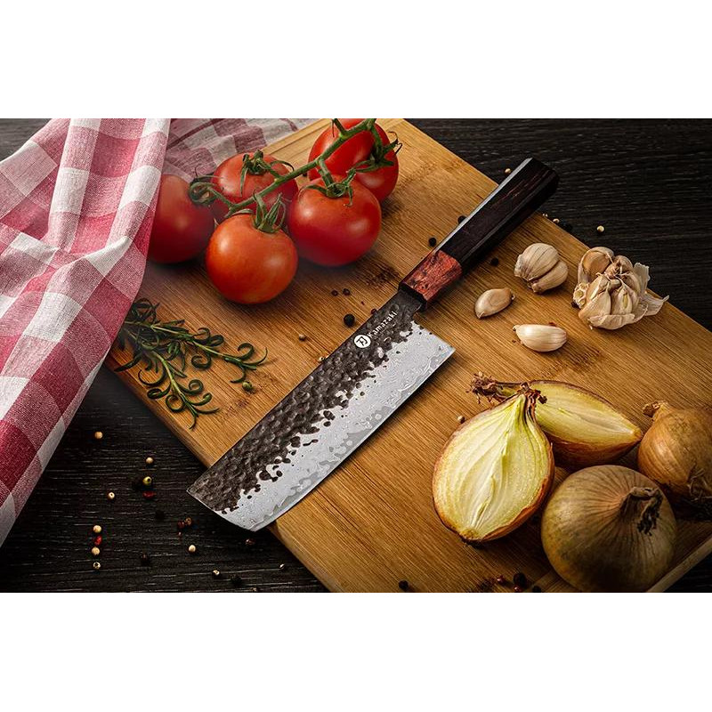 Kamazaki „Nakiri“ peilis yra pagamintas iš 67 sluoksnių Damasko plieno. Jis pasižymi išskirtine kokybe, yra ypatingai aštrus bei ilgaamžis. Šio peilio ašmenys papuošti inovatyvia, dekoratyvinio rašto graviravimo technologija, kuri jį paverčia unikaliu meno kūriniu. Dėka paprastos ir elegantiškos rankenos, sukuriamas kontrastas tarp funkcionalumo bei prabangaus ašmenų ornamentų.